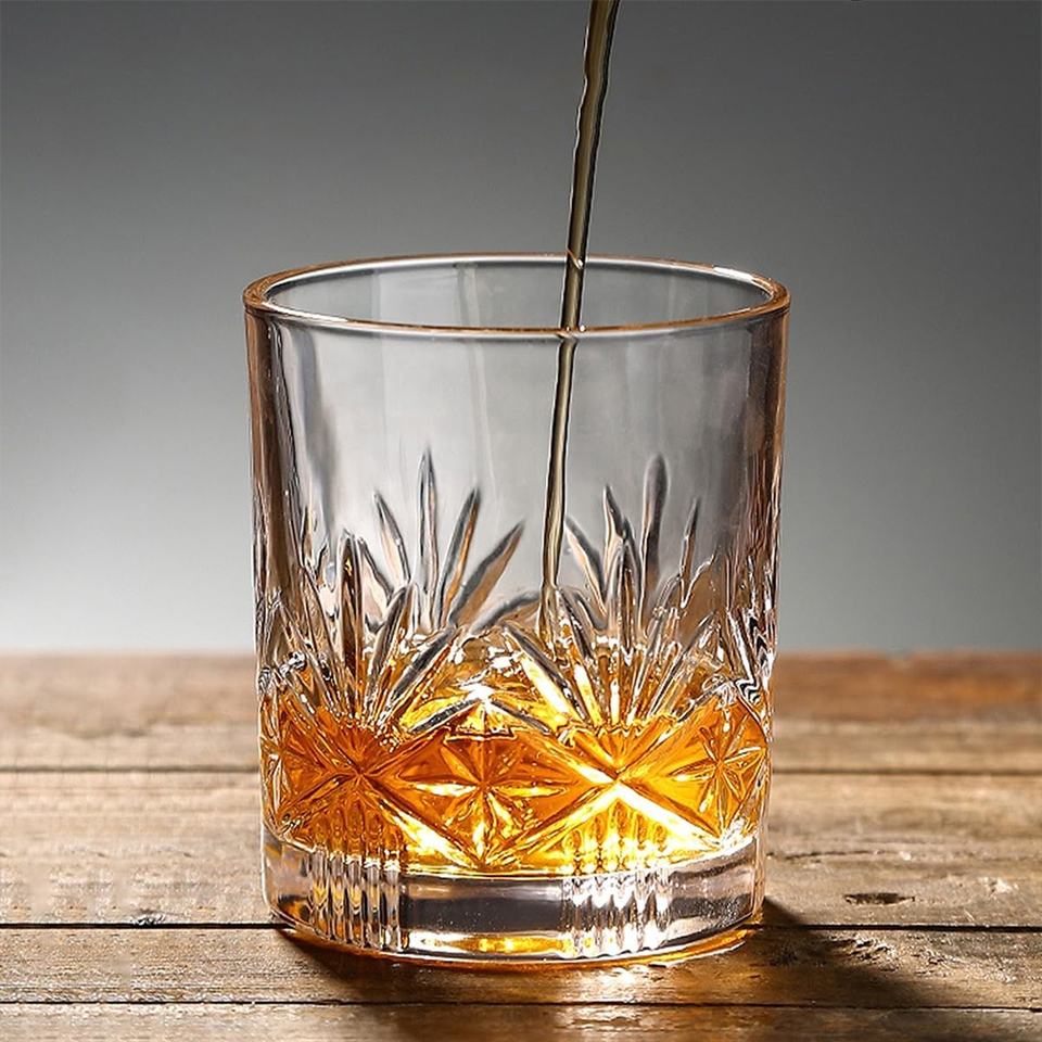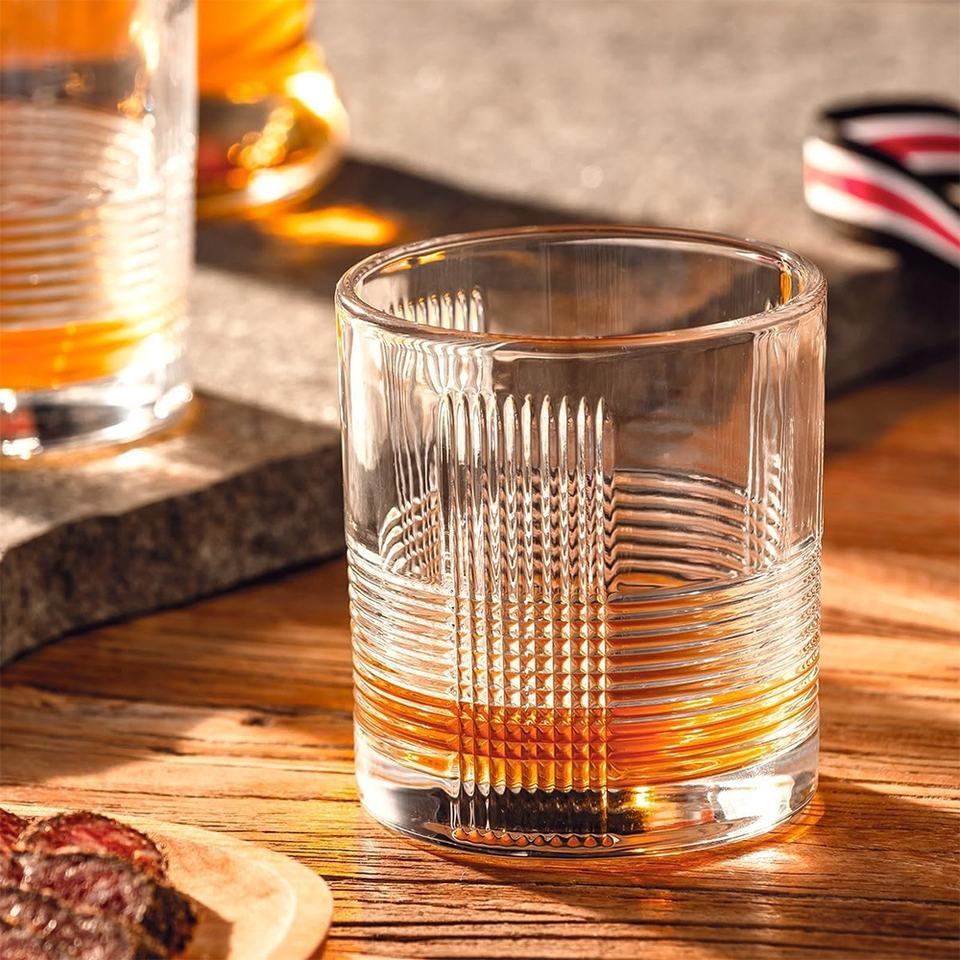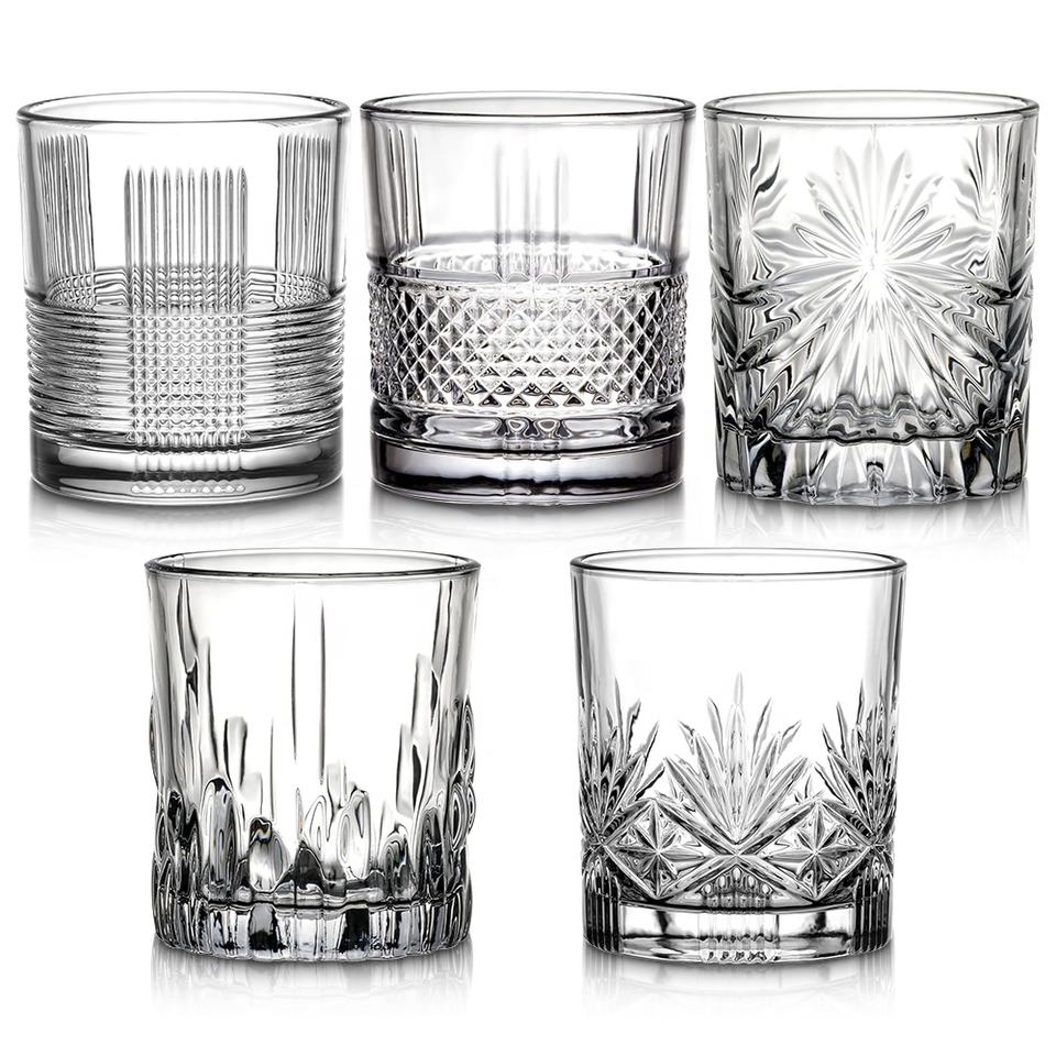 Vaso de rocas en relieve Vintage de 9,5 oz, copa de cristal de espíritu, vasos de whisky antiguos