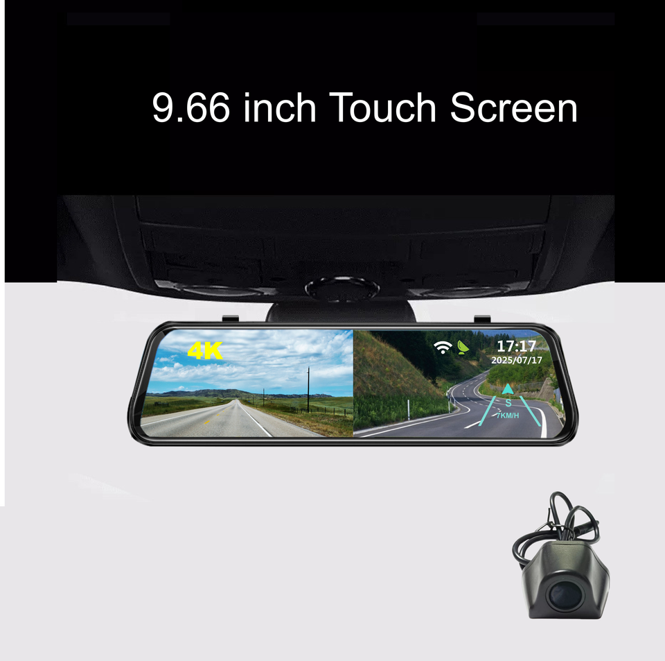 Espejo de pantalla táctil completa de 9,66 pulgadas para coche WiFi 4K + 2K 2 canales DVR espejo retrovisor GPS App Control Clip en versión espejo