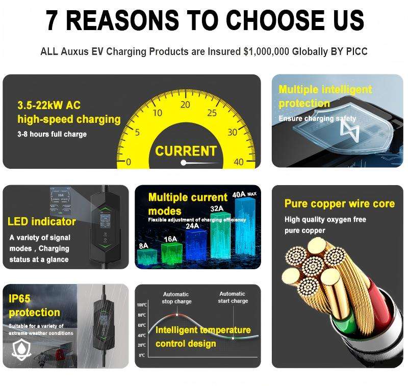 Estación de Carga para Vehículos Eléctricos, 9.6KW 40A, Portátil, Tipo 1, Nivel 1, 2, J1772, NEMA 14 50, Enchufe, Carga Rápida de CA, para Hogar y Automóvil