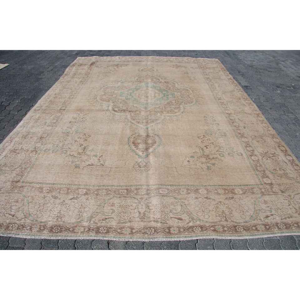 Alfombra de 9.6x12.8 pies, Alfombra Turca Vintage, Alfombra Marrón con Puntos Azules