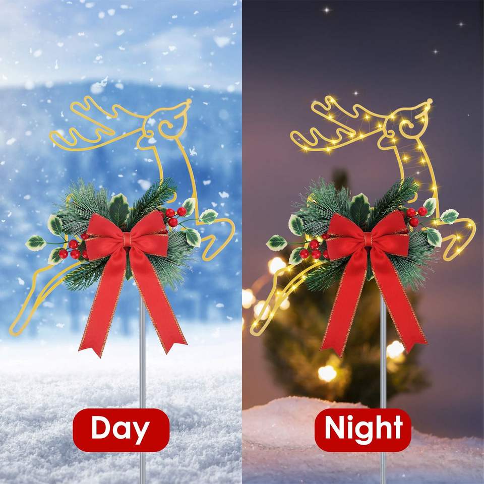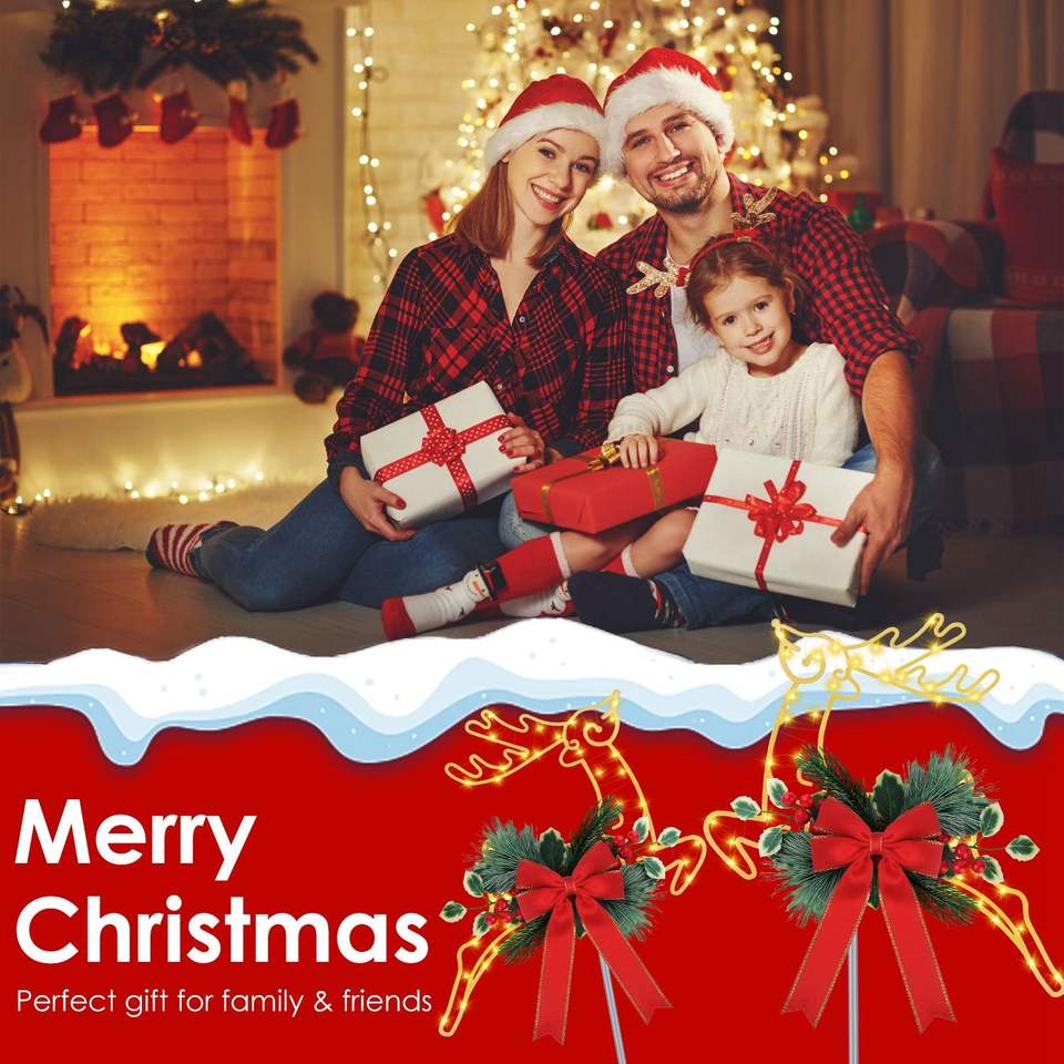 Luces Decorativas de Reno Navideñas para Exteriores, 9.84 Pies, 30 LED, Funciona con Batería, Estaca de Metal, Decoración para Jardín, Patio, Camino, Festividades