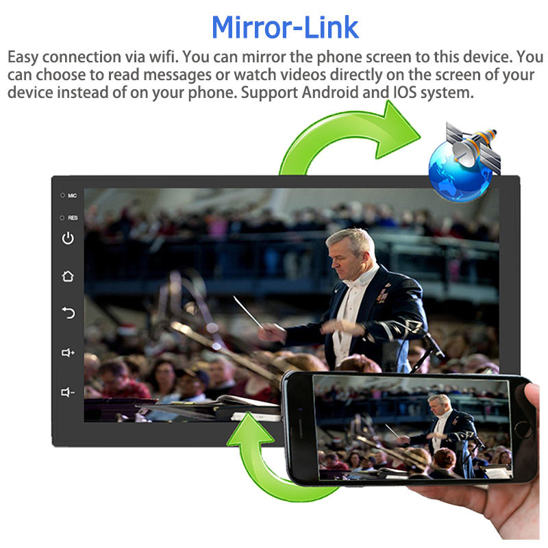 GPS, Estéreo, Amplificador, Enlace espejo, Imagen en la imagen, Micrófono incorporado, Pantalla dividida, Administrador de archivos, Coche de Control de volante