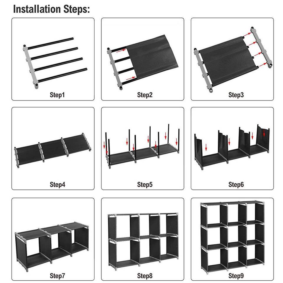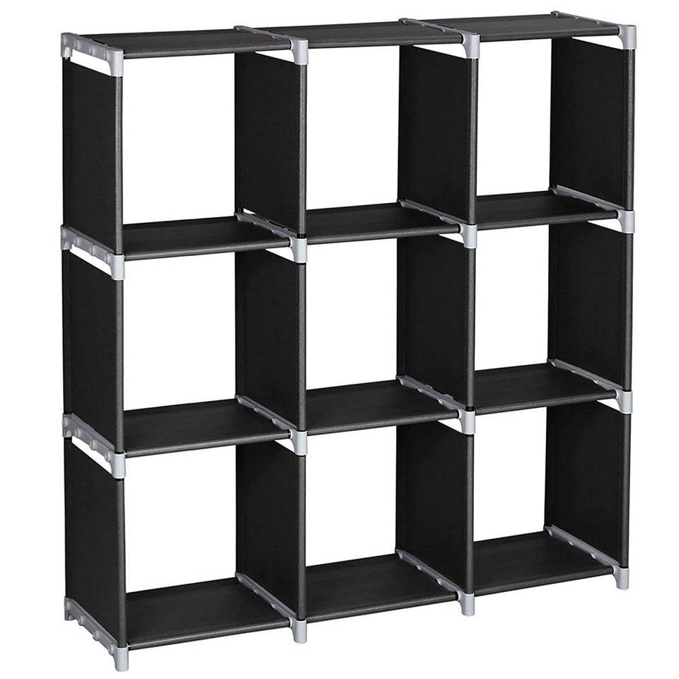 Organizador de Armario con 9 Compartimentos y 3 Niveles, Estantería con 9 Cubos, Mueble de Almacenamiento para Libros