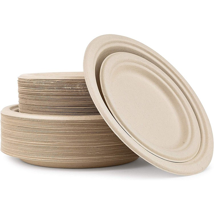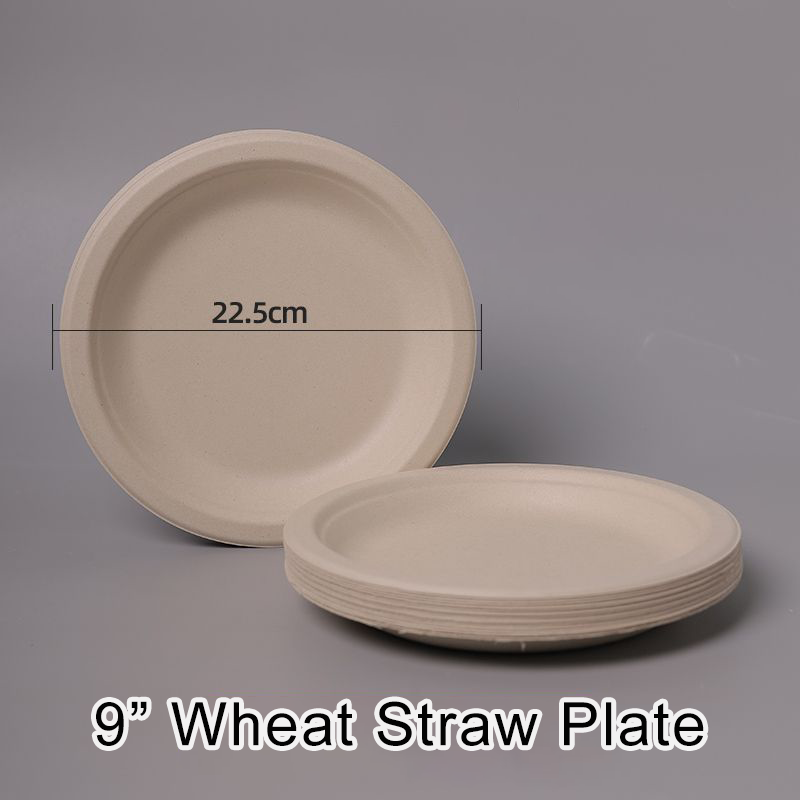 Plato de paja de trigo desechable compostable de 9 ", platos de grado alimenticio a prueba de aceite, bandeja biodegradable para servir alimentos