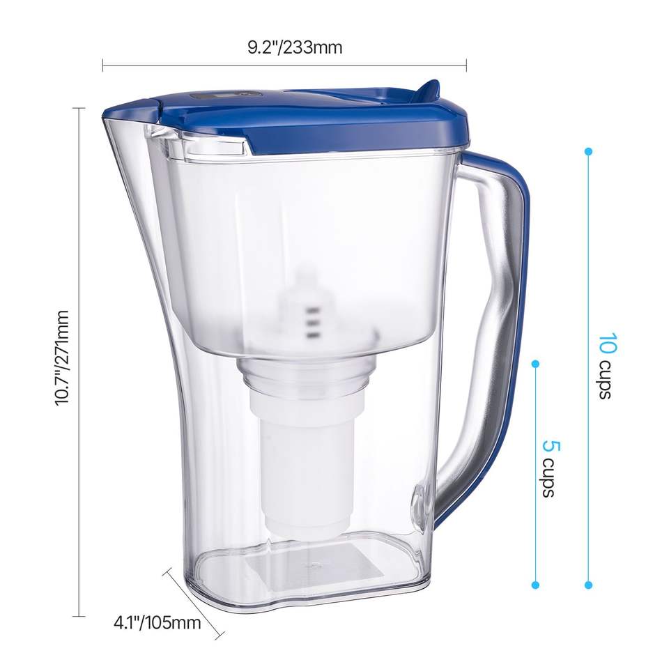 Dispensador de Agua con Filtro de 9 Tazas y 5 Etapas de Filtración Rápida, Jarra Libre de BPA con Indicador de Cambio, Solución Duradera