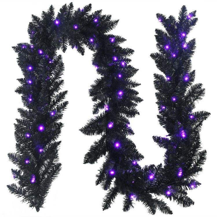 Guirnalda Navideña LED Morada Preiluminada de 9 Pies, Corona de Halloween con 50 Luces Moradas