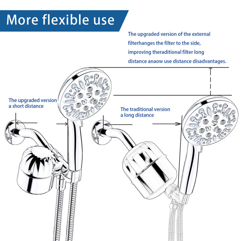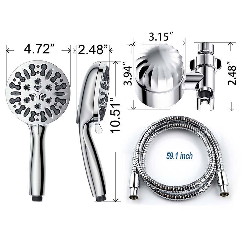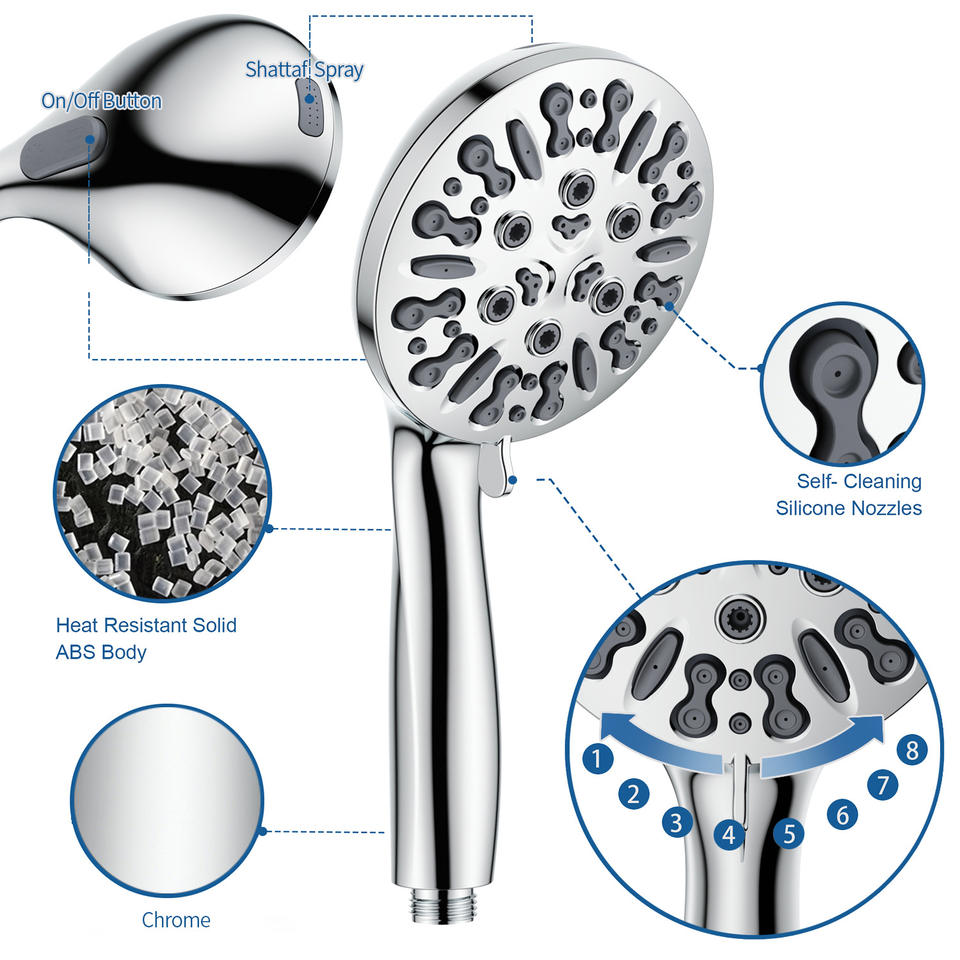 Cabezal de Ducha Ajustable de 9 Funciones con Rociador de Masaje y Lluvia, Cromado, Set de Ducha de Mano Tipo Spa