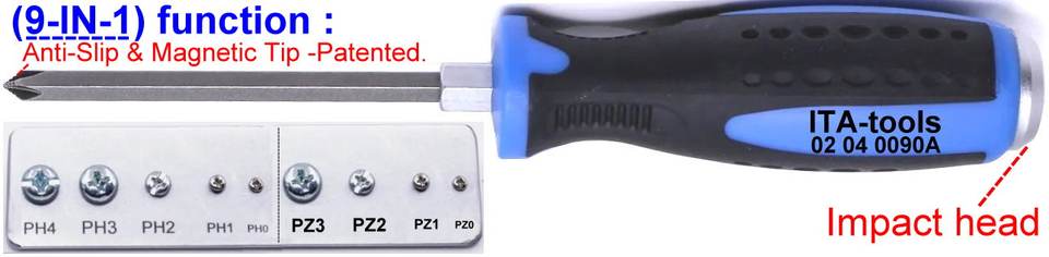 Destornillador multifunción 9 en 1 con cabezal de impacto, antideslizante, punta magnética y agarre 2K
