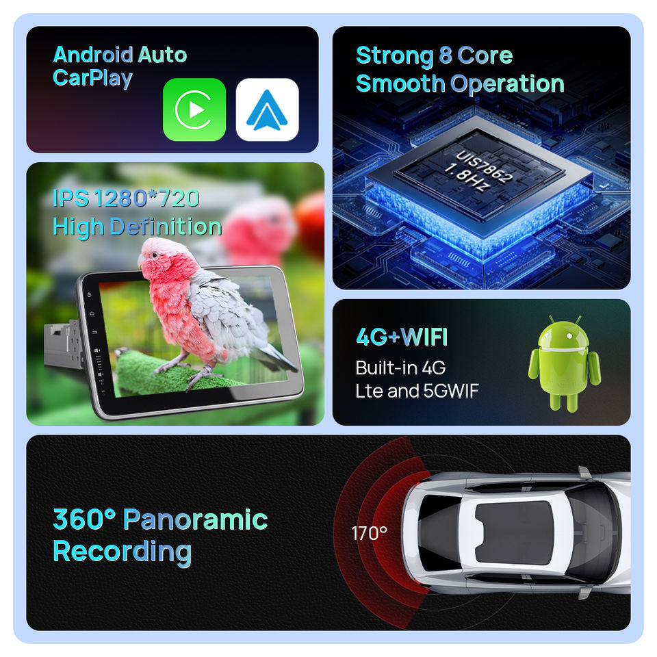 9 pulgadas 10 pulgadas Carplay Android 8Core 7862 8 + 128GB reproductor Multimedia 2 Din reproductor de coche giratorio 360 grados Radio de coche