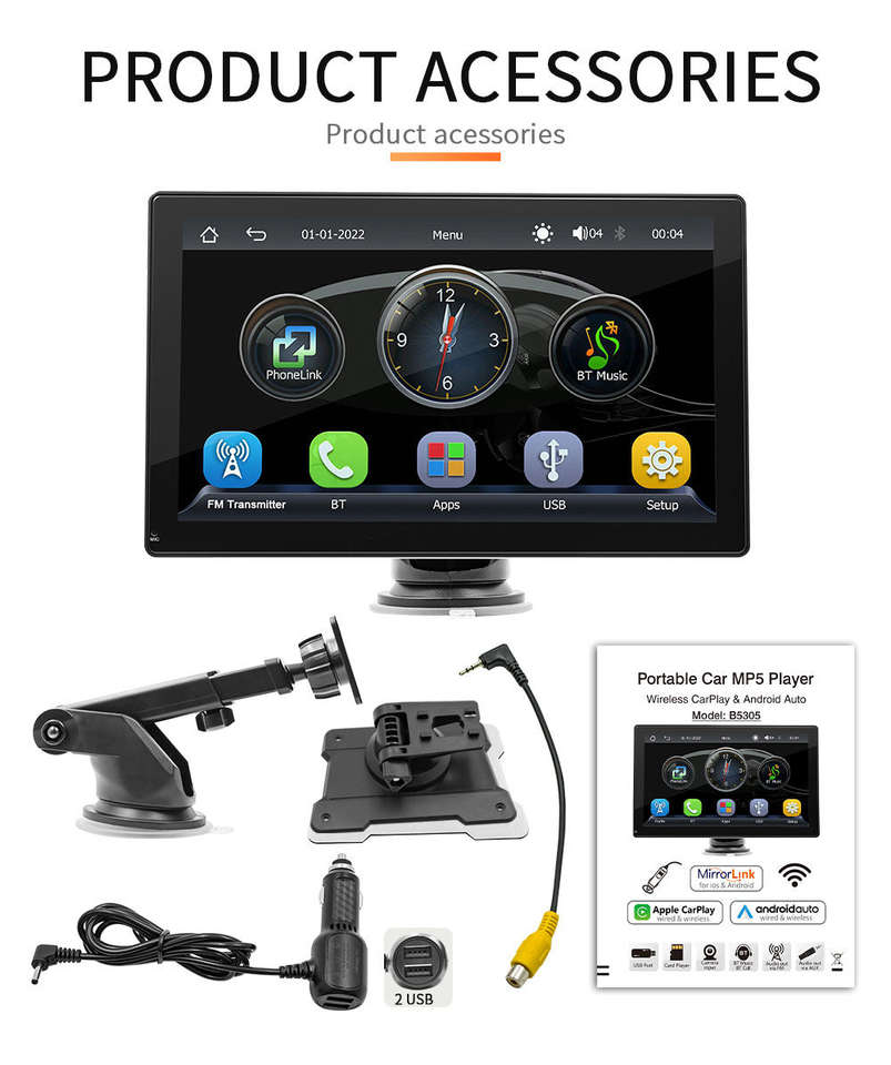 Pantalla Carplay de 9 pulgadas Reproductor de DVD para coche Teléfono universal Enlace inalámbrico Tablero Pantalla Carplay portátil Pantalla Carplay