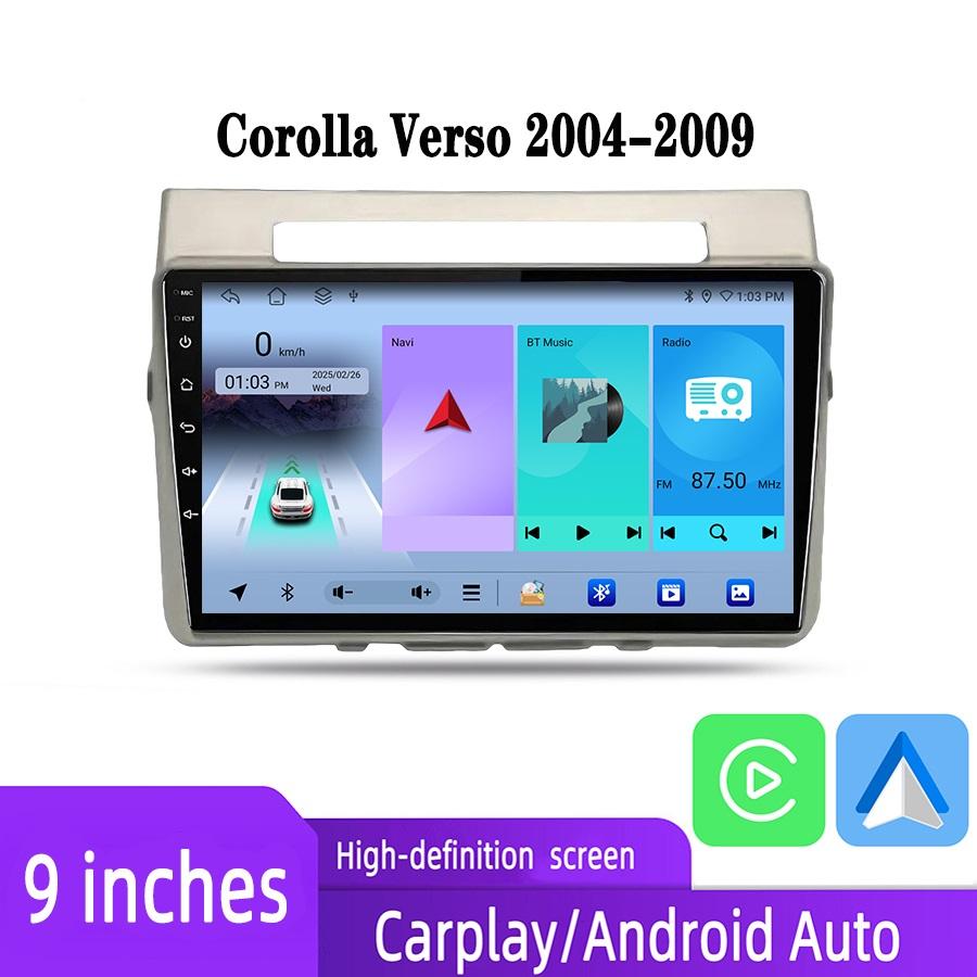 Radio Estéreo para Auto con Pantalla IPS de 9 Pulgadas, Android, GPS, Amplificador, Carplay, Android Auto para Toyota Corolla Verso 2004-2009