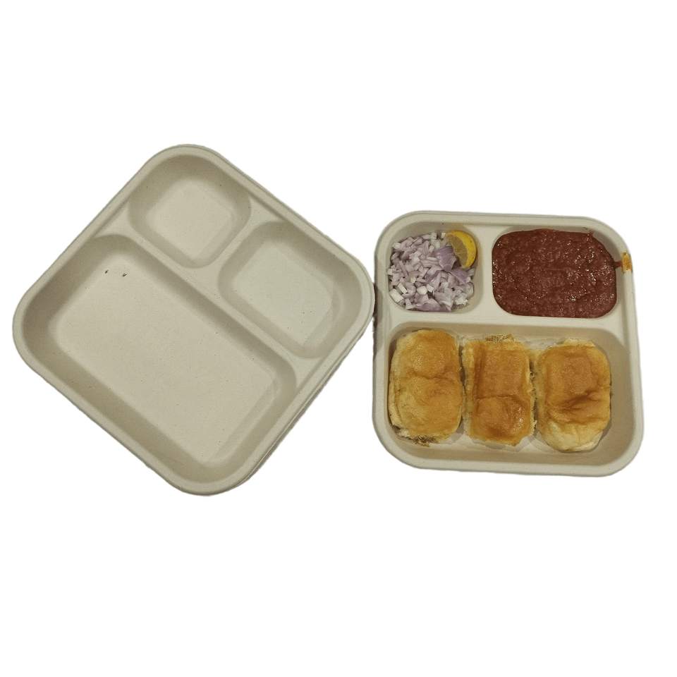 Juego de Vajilla Desechable Cuadrada de 9 Pulgadas a Prueba de Fugas con Tapa, 100% Natural de Bagazo de Caña de Azúcar, Estilo Moderno, 100 Piezas