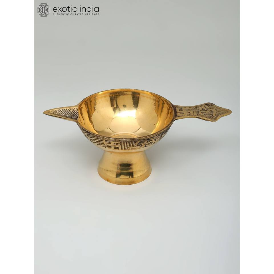 Diya de latón tradicional hecho a mano de rituales de 9 pulgadas para decoración del hogar y artículo de templo hecho en La India