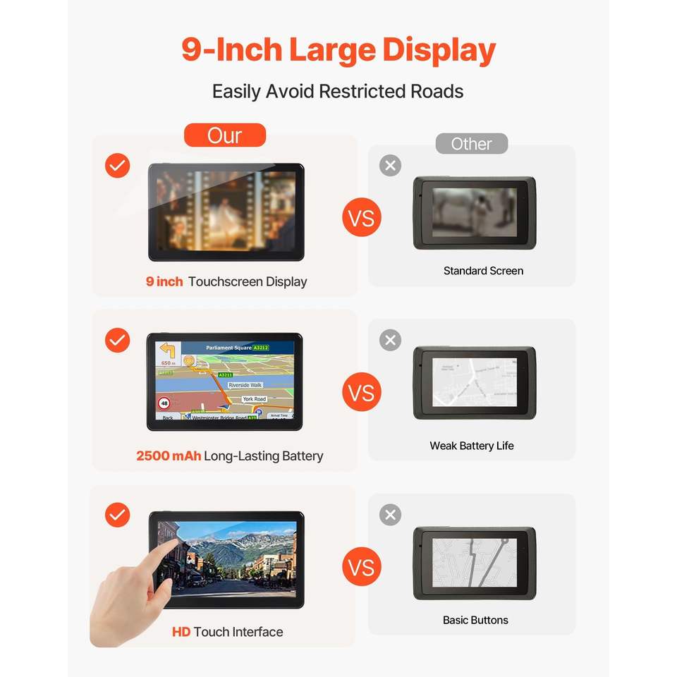 Navegador GPS para Auto con Pantalla Táctil de 9 Pulgadas, Actualizaciones de Mapas de por Vida, Sistema de Navegación de 16GB y Guía de Voz Turn-by-Turn