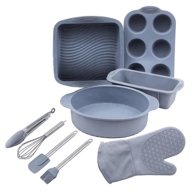Juego de 9 Moldes para Hornear Resistentes al Calor, Antiadherentes, de Silicona, para Pasteles y Galletas, con Espátula y Guante
