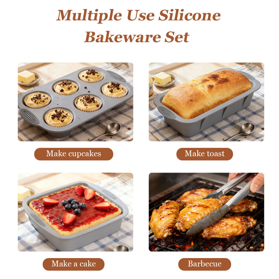 Establecer Producto:Molde de silicona cuadrado redondo para hornear/Molde para pan de molde/Molde para muffins de 6 cavidades