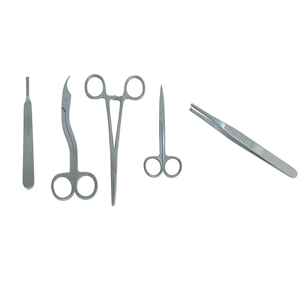 Juego de 9 Instrumentos Quirúrgicos Manuales de Acero Inoxidable de Alta Calidad con Certificación CE y 1 Año de Garantía para Uso Hospitalario