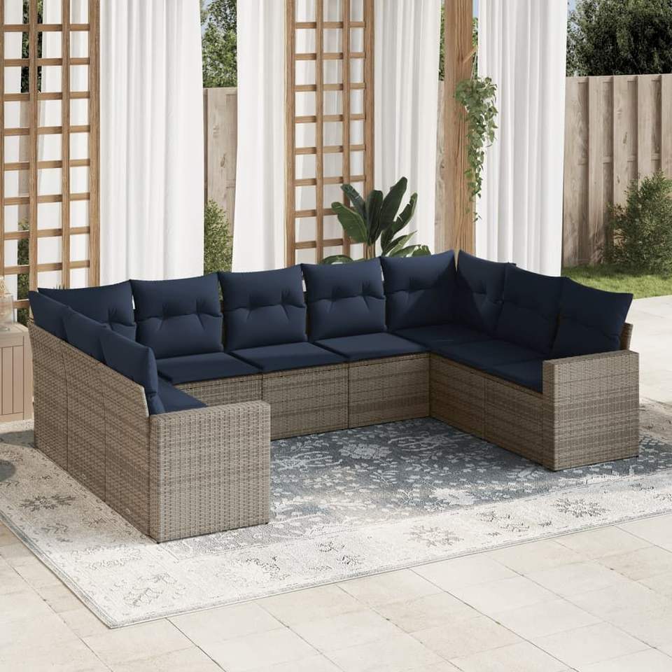 Juego de sofás de patio de ratán sintético gris de 9 piezas con cojines, conjuntos de jardín