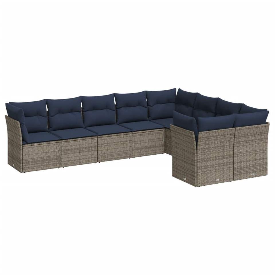 Juego de sofás de patio de ratán sintético gris de 9 piezas con cojines, conjuntos de jardín