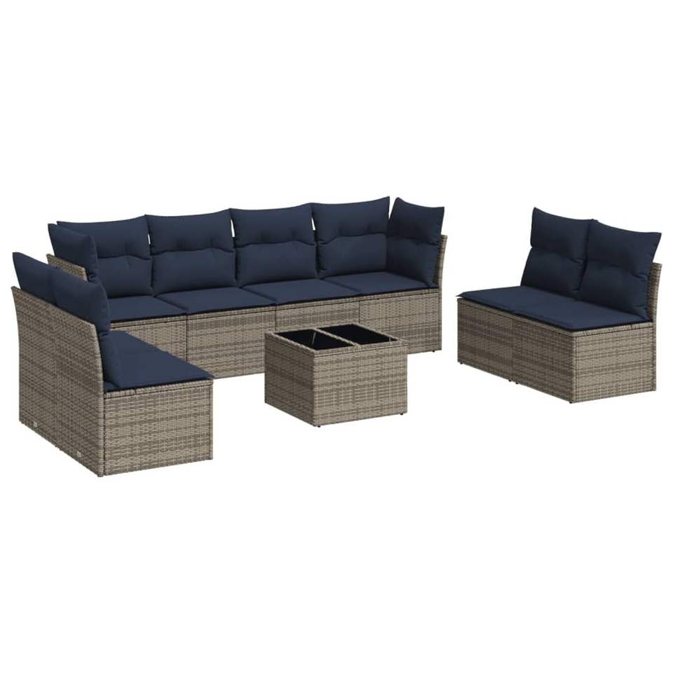 Juego de sofás de patio de ratán sintético gris de 9 piezas con cojines, conjuntos de jardín