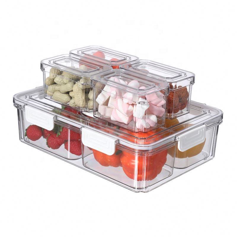 Juego de almacenamiento de cocina de plástico PP transparente de 9 piezas Técnicas de inyección Contenedores de granos de frutas y verduras para almacenamiento en refrigerador