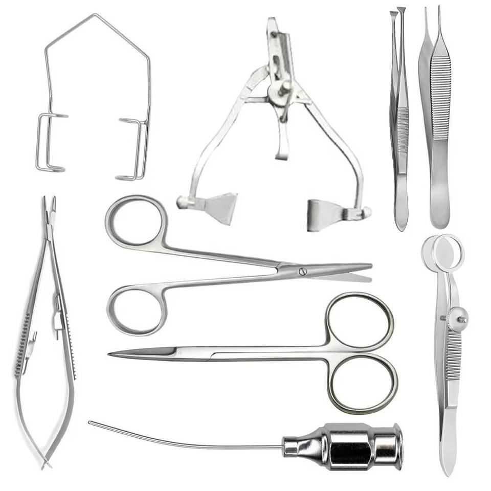 Kit de 9 Piezas de Instrumentos Oftalmológicos Veterinarios, Herramientas Quirúrgicas para Párpados, Juego de Cirugía Ocular, Acero Inoxidable de Grado Médico, Estándar CE ISO
