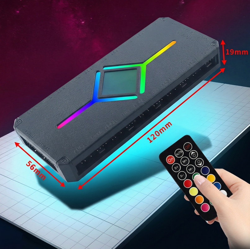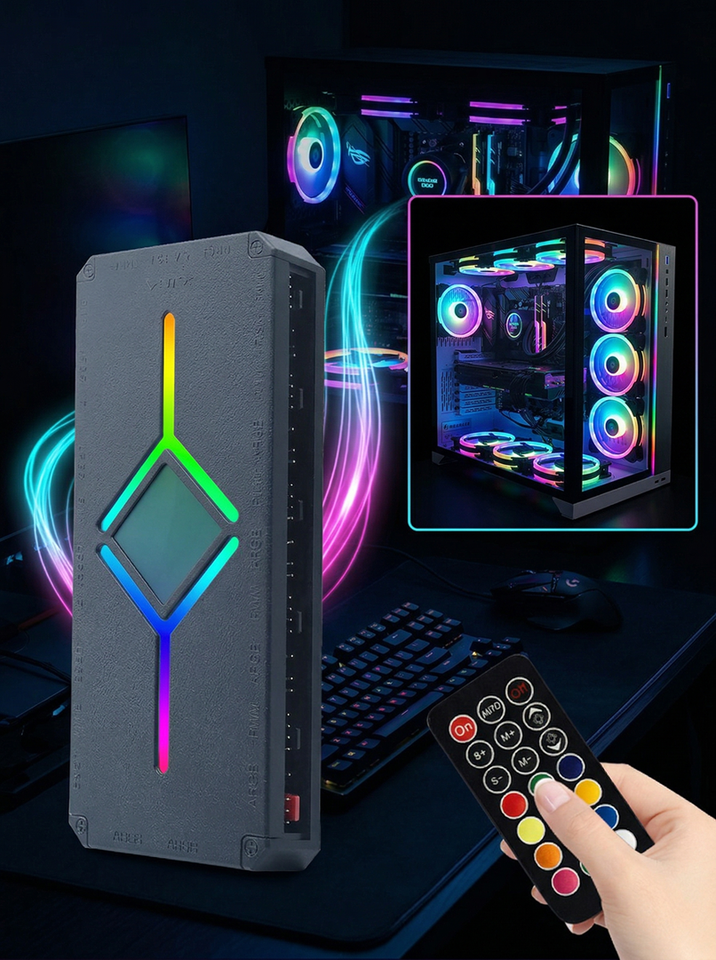 Controlador RGB de 9 Puertos 5V3Pin Sincrónico PWM de 4 Pines con Control Remoto Inalámbrico Negro Blanco para Ventiladores de Caja de Ordenador de Escritorio Bajeal