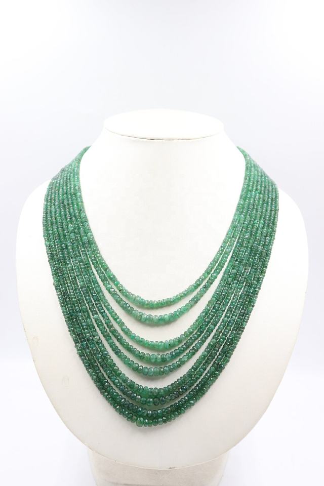 Collar Rondelle facetado de Esmeralda natural de 9 hilos Cuentas de piedra esmeralda de 3-5mm