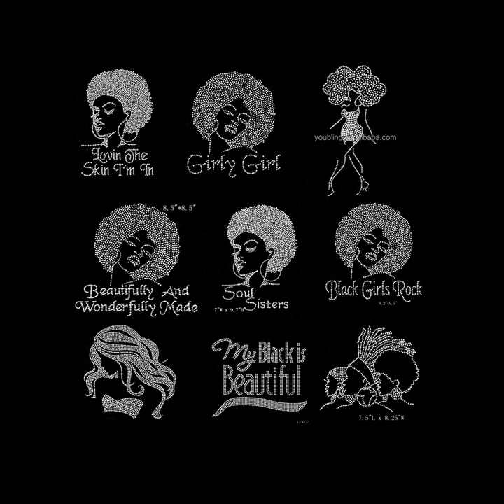 Product Name:Afro girl Lady Clear Custom Rhinestone Transfer