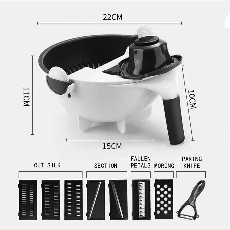 Cortador de Verduras Manual 9 en 1 Multifuncional para Cebolla, Patata, Zanahoria, Rebanador, Cortador, Rallador, Triturador, Pelador, Desmenuzador para Cocina
