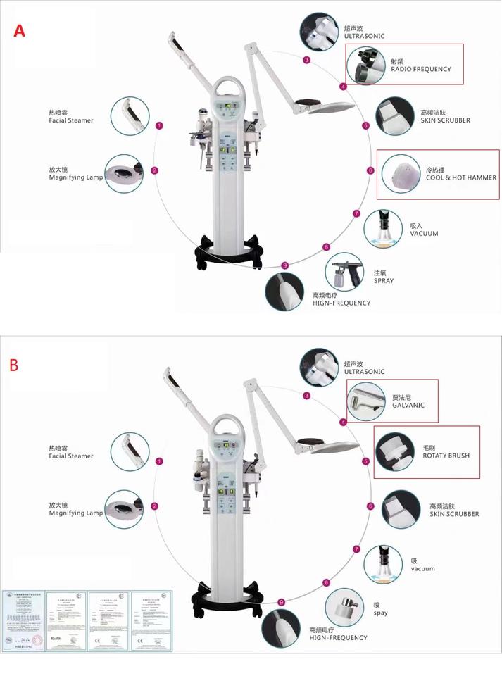 9 En 1 Ultrasonido multifuncional Estiramiento DE LA PIEL Estiramiento facial galvánico Ozono Vaporizador facial Vaporizador Piel Máquina de limpieza profunda
