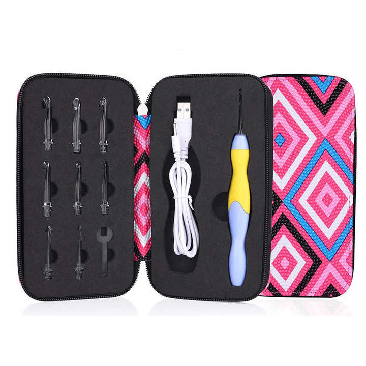 Juego de accesorios de costura desmontables con luz LED USB 9 en 1, nueva bolsa de gancho de ganchillo recargable con múltiples agujas intercambiables