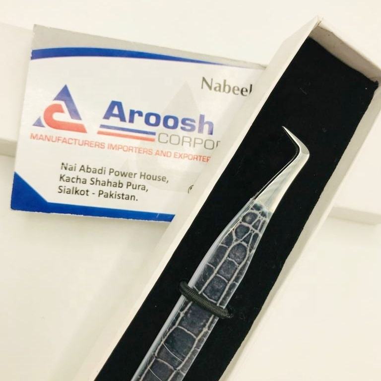 Pinzas de acero inoxidable de volumen ruso de 90 grados, extensión de pestañas puntiagudas de fibra recubierta de papel de cocodrilo de alta calidad