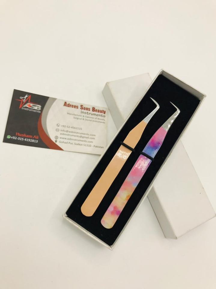 Pinzas de extensión de pestañas con logotipo personalizado para bota delgada de 90 grados Punta puntiaguda de acero inoxidable sostenible Etiqueta privada Mega volumen