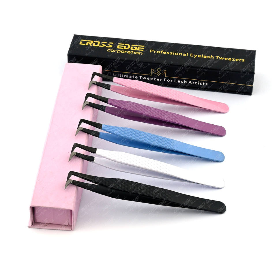 Embalaje:Embalaje personalizado Punta de fibra 90 grados pinzas conjunto extensión de pestañas
