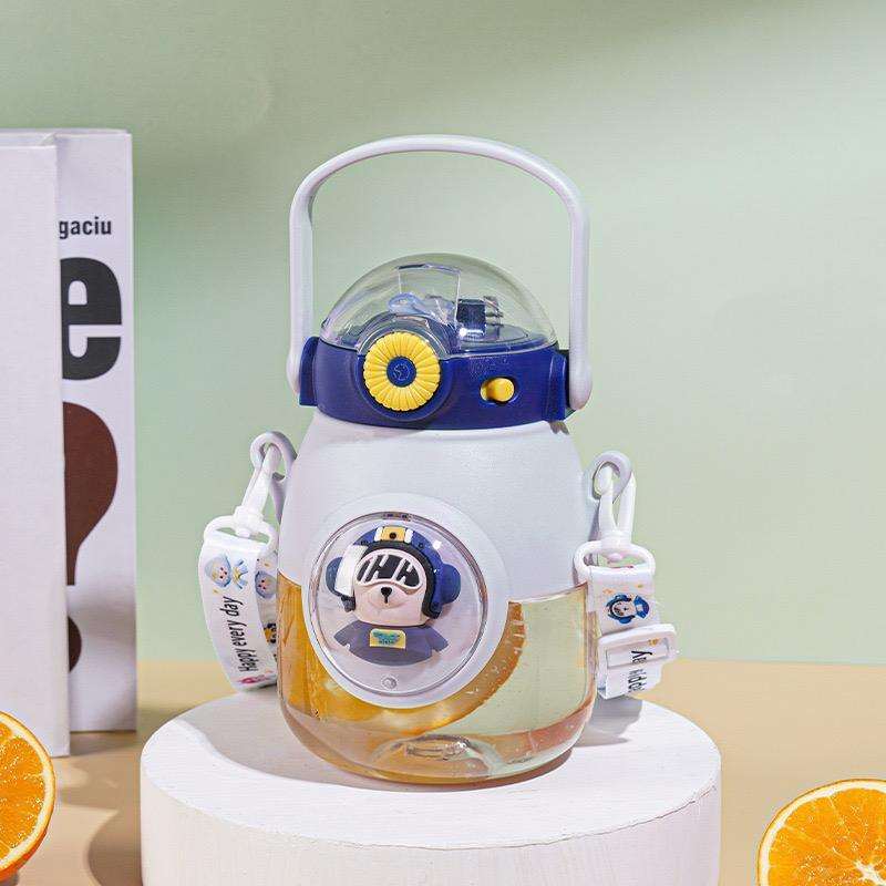Botella de Agua para Bebés de Gran Capacidad con Diseño de Cápsula Espacial de 900 ml, con Pajita, Accesorio de Bebida de Plástico con Dibujos Animados para Niños