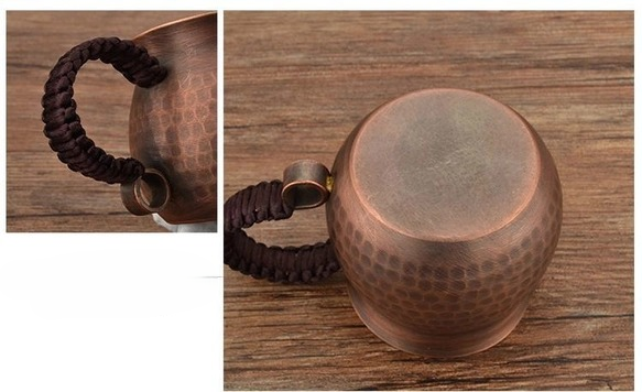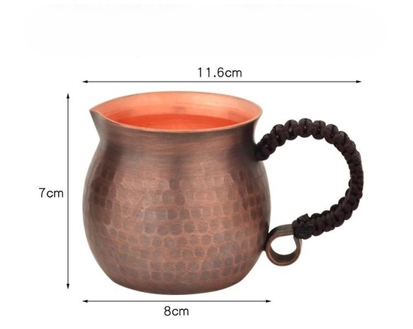 Taza de Té de 90 ml, Taza de Sake, Taza de Té de Cobre de Doble Pared Aislada para Bebidas Frías y Calientes, Hecha a Mano