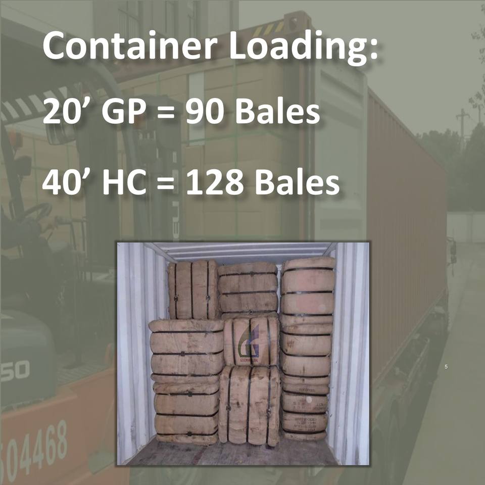 Packing & Loading:300 bags per bale; 90 bales/20ft or 128 bales/40ft HC Container
