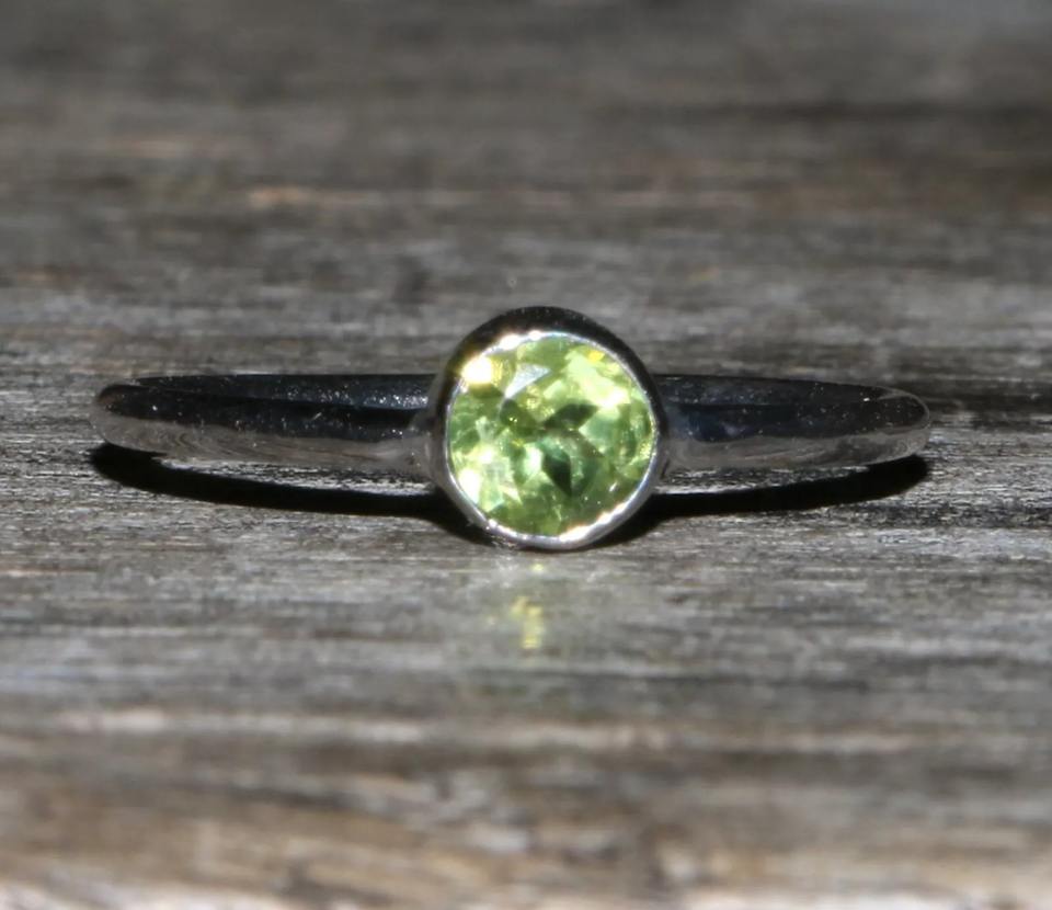 Anillo de Plata de Ley 92.5 con Piedra Preciosa de Peridoto Verde, Joyería Hecha a Mano, Regalo de Piedra Natal de Agosto para Ella