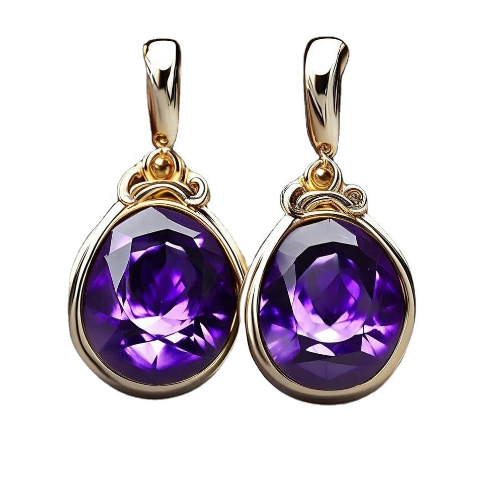 Pendientes colgantes de plata de ley 925 con amatista y piedras preciosas multicolores chapadas en oro para bodas o regalos