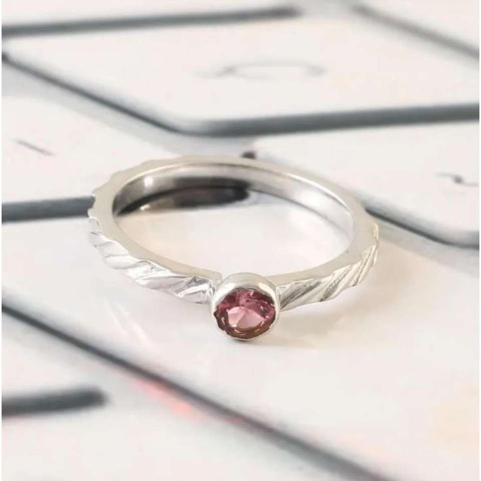 Anillos finos de Plata de Ley 925 Natural hechos a medida, bisel de piedras preciosas de turmalina rosa, joyería de boda a granel, venta al por mayor, para niñas