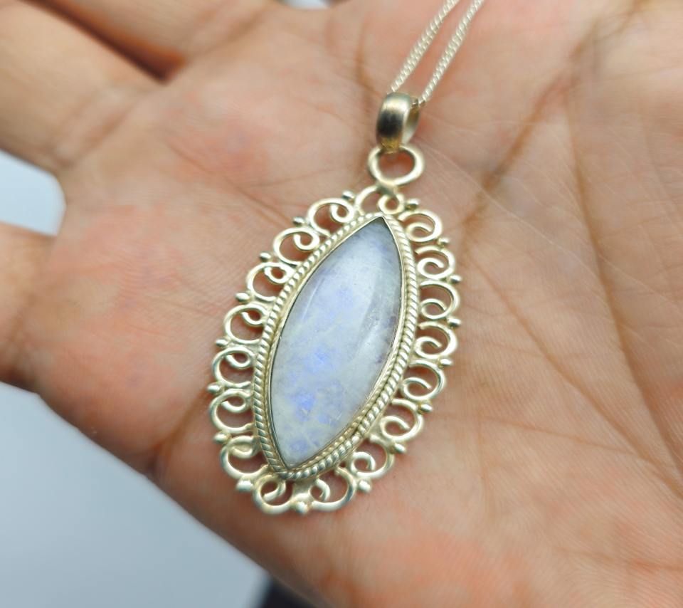 925 bonito colgante de piedra lunar de arcoíris colgante de plata de ley 925 hecho a mano colgante de piedras preciosas reales regalo de aniversario