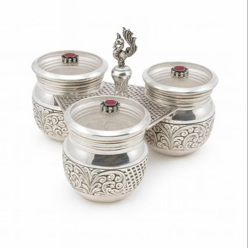 Juego de 3 Recipientes para Frutos Secos de Plata 925, Caja de Almacenamiento Artesanal para Frutos Secos, Dulces y Bocadillos, Artículo Decorativo para Regalo