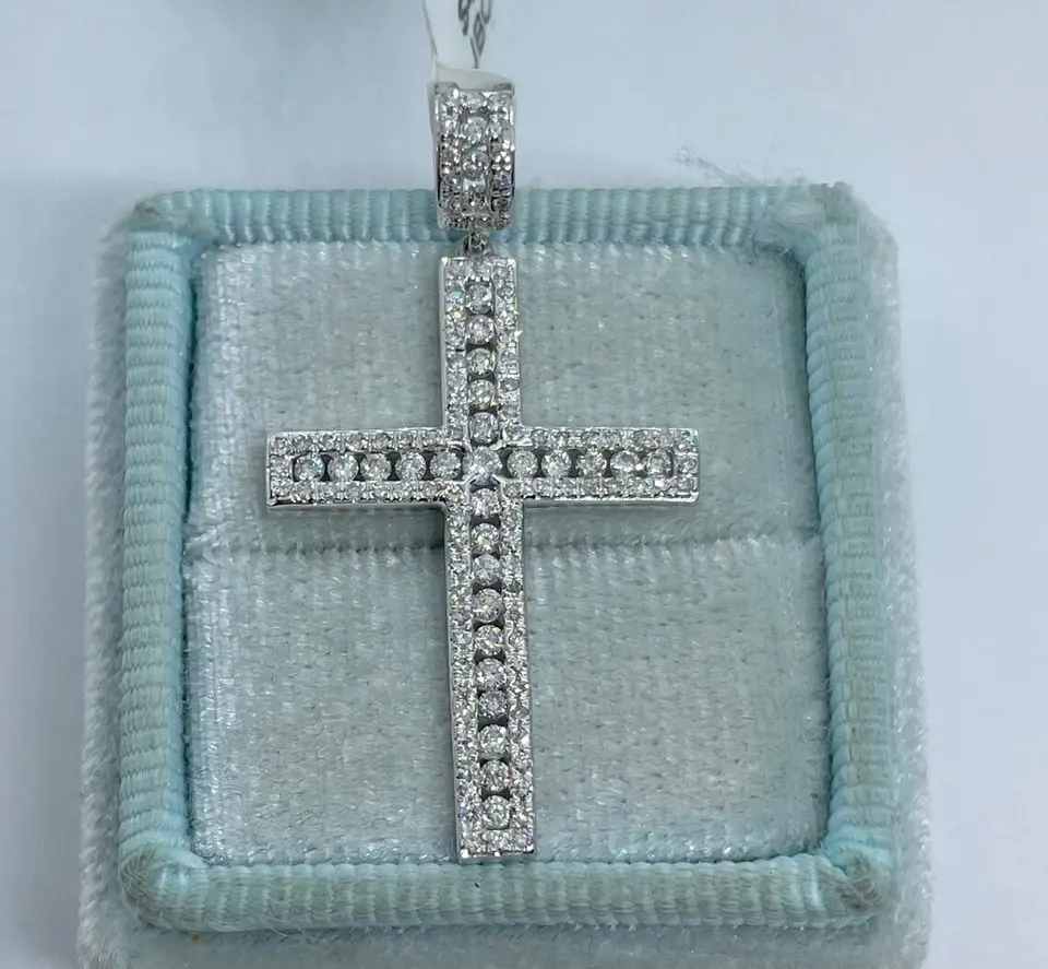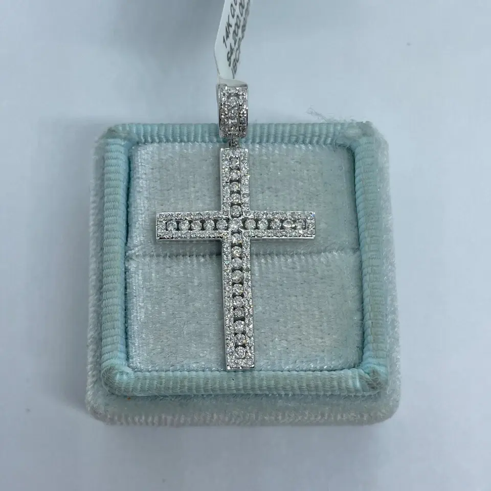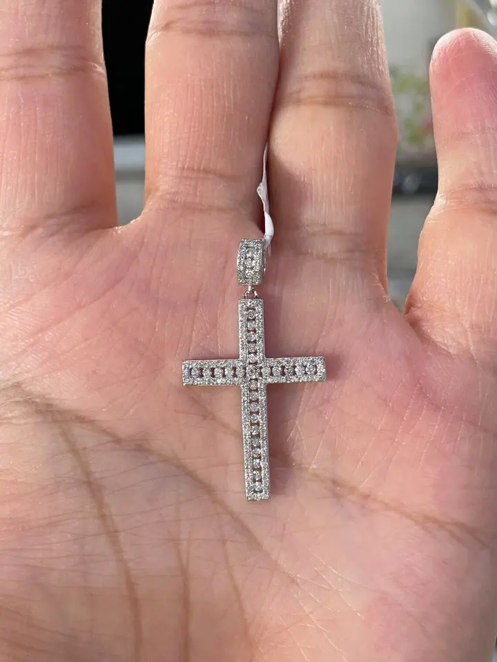 Colgante de Cruz de moissanita real de corte redondo de 3 quilates de plata 925 con colgantes y dijes de cadena gratis