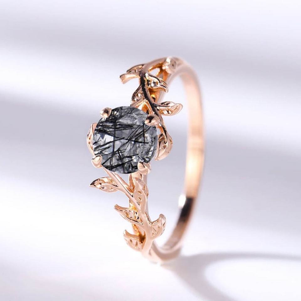 Anillo de cuarzo rutilado negro:Anillo de cuarzo rutilado negro