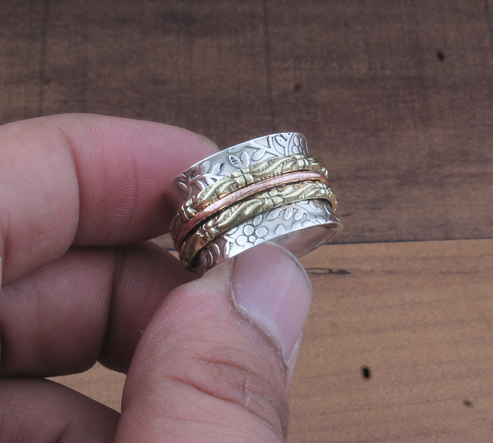 Anillo Giratorio de Plata 925 y Latón, Estilo Clásico, de Metal Mixto, para Meditación, Idea de Regalo para Hombre, para Bodas y Fiestas