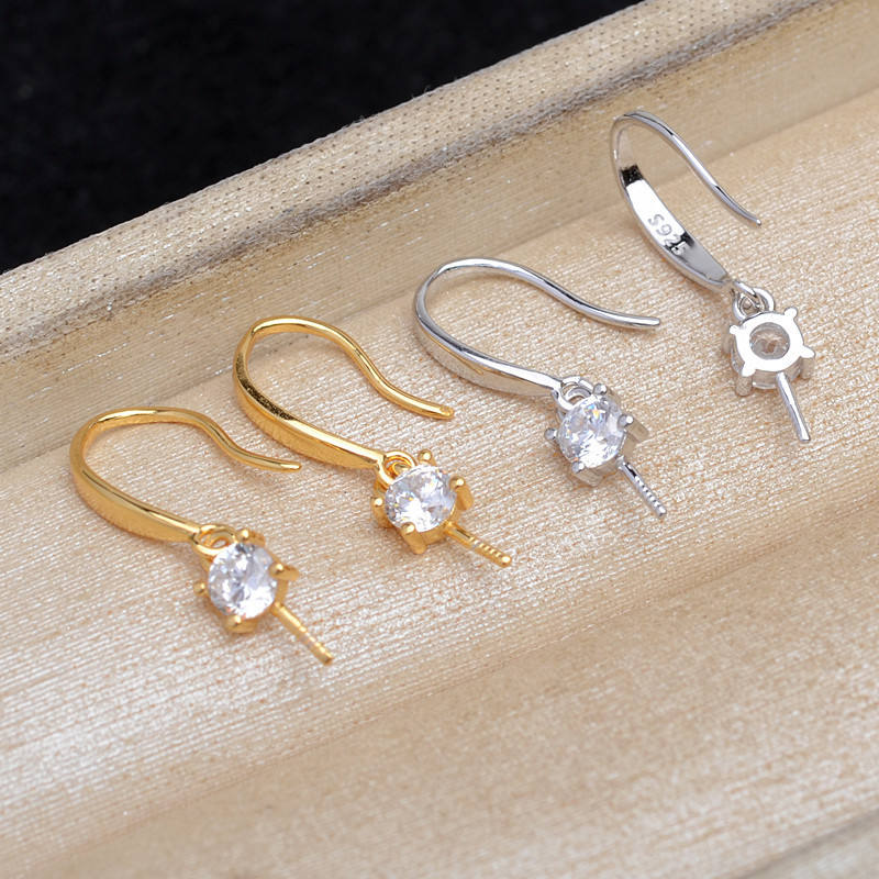 Base para Pendientes de Plata 925, Accesorios para Joyería con Perlas, JG5916, Soporte Vacío para Pendientes, Semi-terminado, para Perlas de 9-10mm, Tamaño de Perla 3mm, en Bolsa