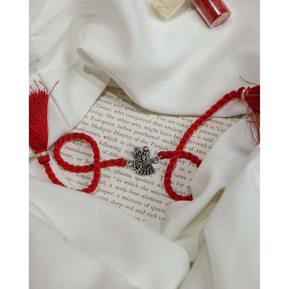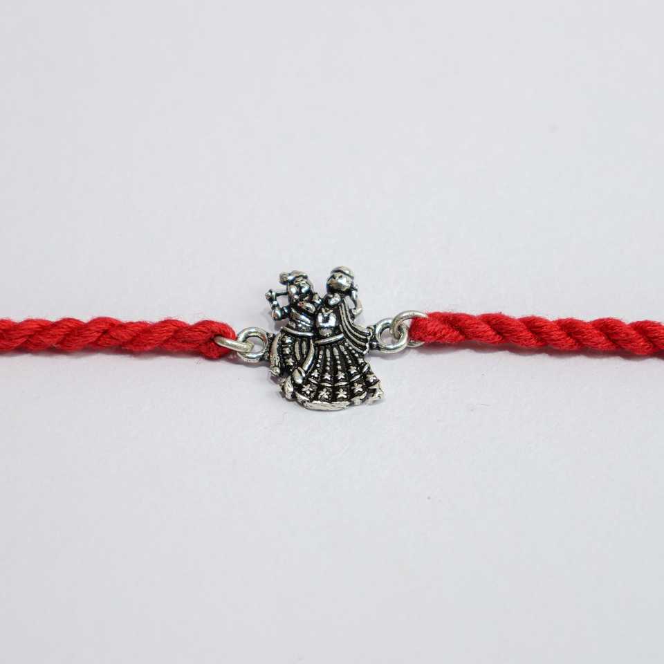 Pulsera de Plata 925 con Dije de Radha Krishna y Perla de Agua Dulce, Corte Princesa, Bañada en Rodio, Forma de Amantes Religiosos