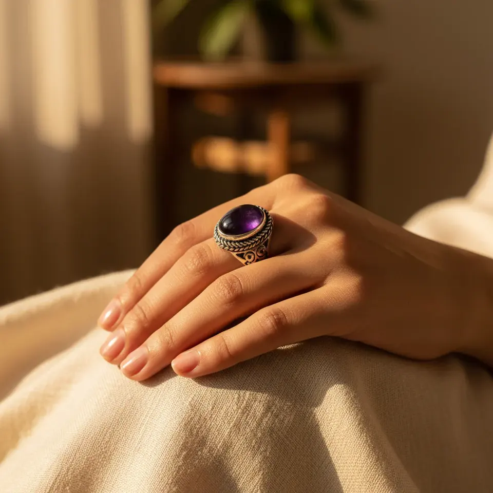 Plata de ley 925, Gema de amatistaMaterial