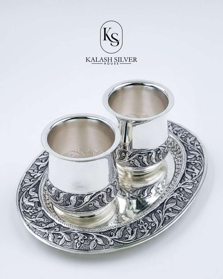 Juego de Vasos de Plata 925 con Bandeja para el Hogar, Cena, Pooja, Servicio Tradicional y Regalo Festivo Elegante